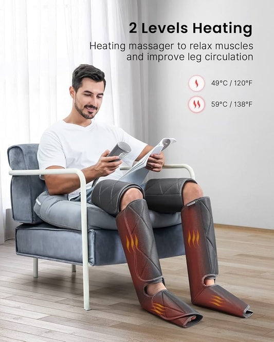 RENPHO Leg Massager with Heat, Compression Calf Thigh Foot Massage, Adjustable Wraps Design for Most Size, with 6 Modes 3 Intensities, Relax Leg Muscle
