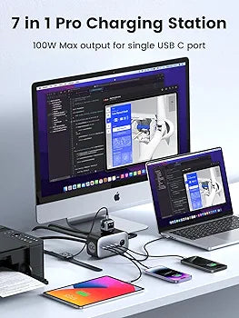 UGREEN 100W USB-C Charging Station with AC Outlet, Nexode 7-in-1 GaN Power Strip for Home and Office, with 3 AC, 3 USB C & 1 USB A, 6ft Extension Cord, for MacBook Pro/Air, iPad, iPhone 16, Galaxy S24
