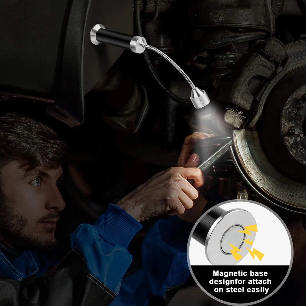 360-DEGREE FLEXIBLE GOOSENECK & SWIVEL HEAD: It is equipped with a 5-inch and 360 degrees gooseneck that makes it possible to adjust the light to any position. That is to say, it can help you adjust the direction of illumination. The focus and the range of the swivel headlight can also be adjusted to deal with different purposes of use.
