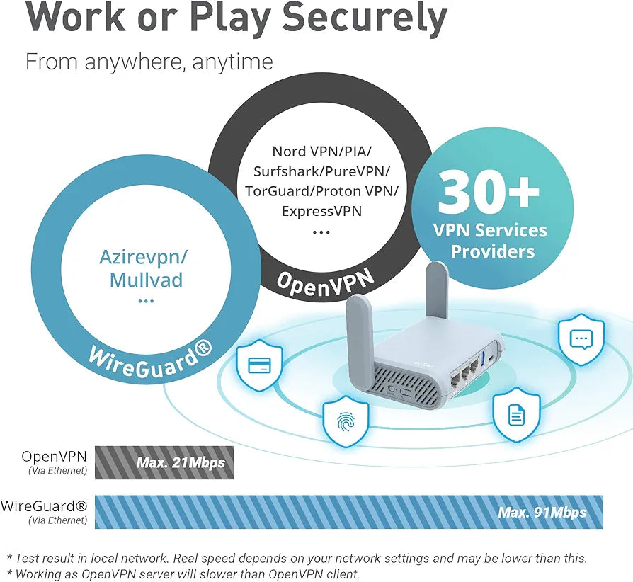 【KEEP YOUR INTERNET SAFE】 IPv6 supported. OpenVPN & WireGuard pre-installed, compatible with 30+ VPN service providers. Pre-installed Tor service. Cloudflare Supported. A toggle switch for VPN/Tor is also included.