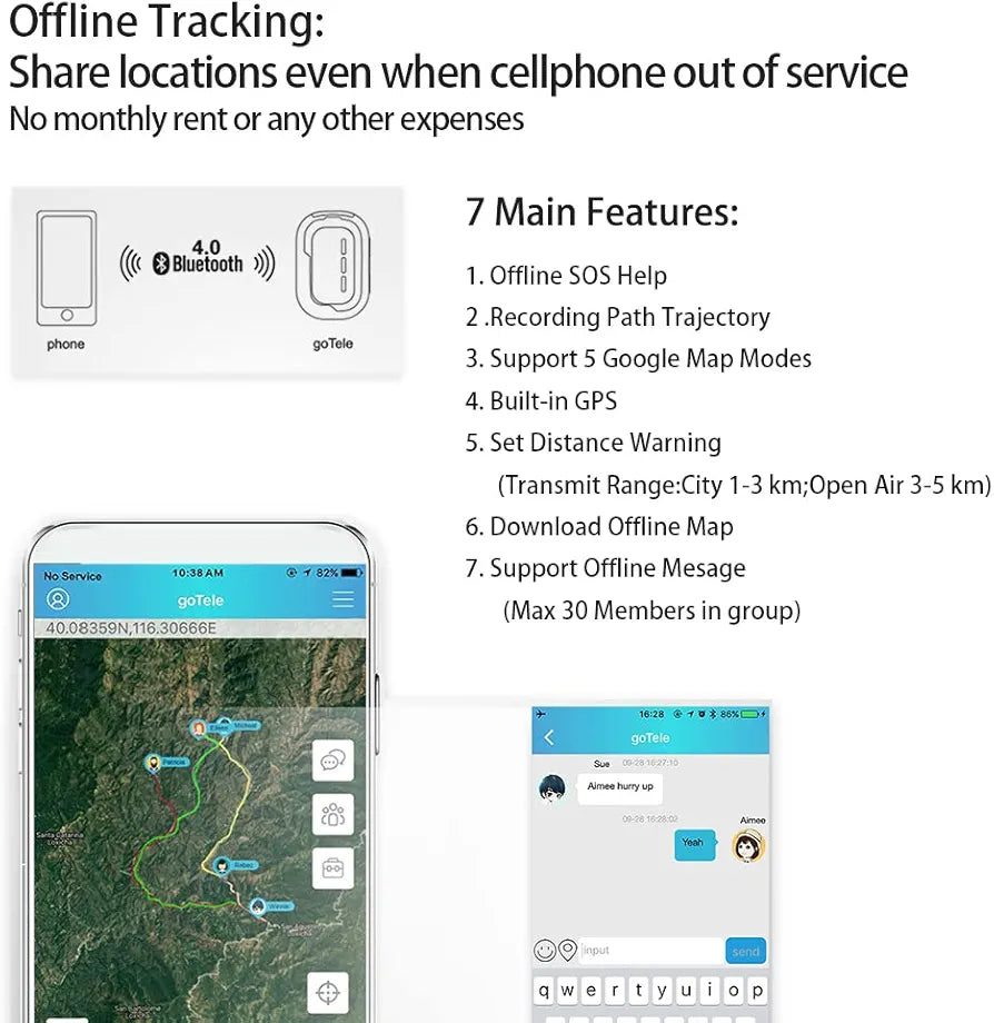 No Monthly Fee,No SIM Card,No Network Required】goTele outdoor gps tracker allows users to communicate directly from goTele to goTele without cell service or Wi-Fi.