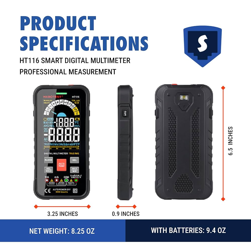 HABOTEST HT116 Digital Multimeter 9999 Counts, True RMS, Auto-Off, DC/AC Voltage, Current, Resistance, Continuity, Capacitance, Ohms, Frequency, Diodes, NCV, and Temperature