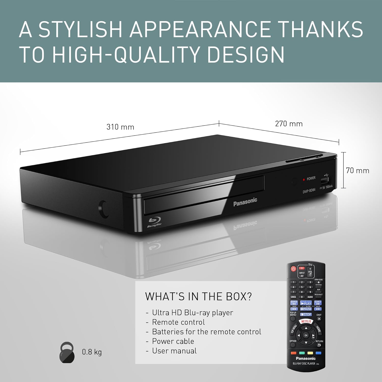 Panasonic Blu Ray DVD Player with Full HD Picture Quality and Hi-Res Dolby Digital Sound, DMP-BD84P-K, Black