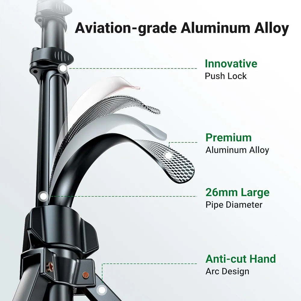 Adjustable Height and Angle: The heigth of UGREEN iPhone Tall Filming Tripod Stand can extend from 48cm/19 '' to 180cm/70 ''. And the Phone Tripod Stand features a 360-degree rotating clamp and a 190-degree movable knob to make angle adjustment freely. Perfect for adjusting the attached phone to a desired height and angle for filming, video recording, live streaming.